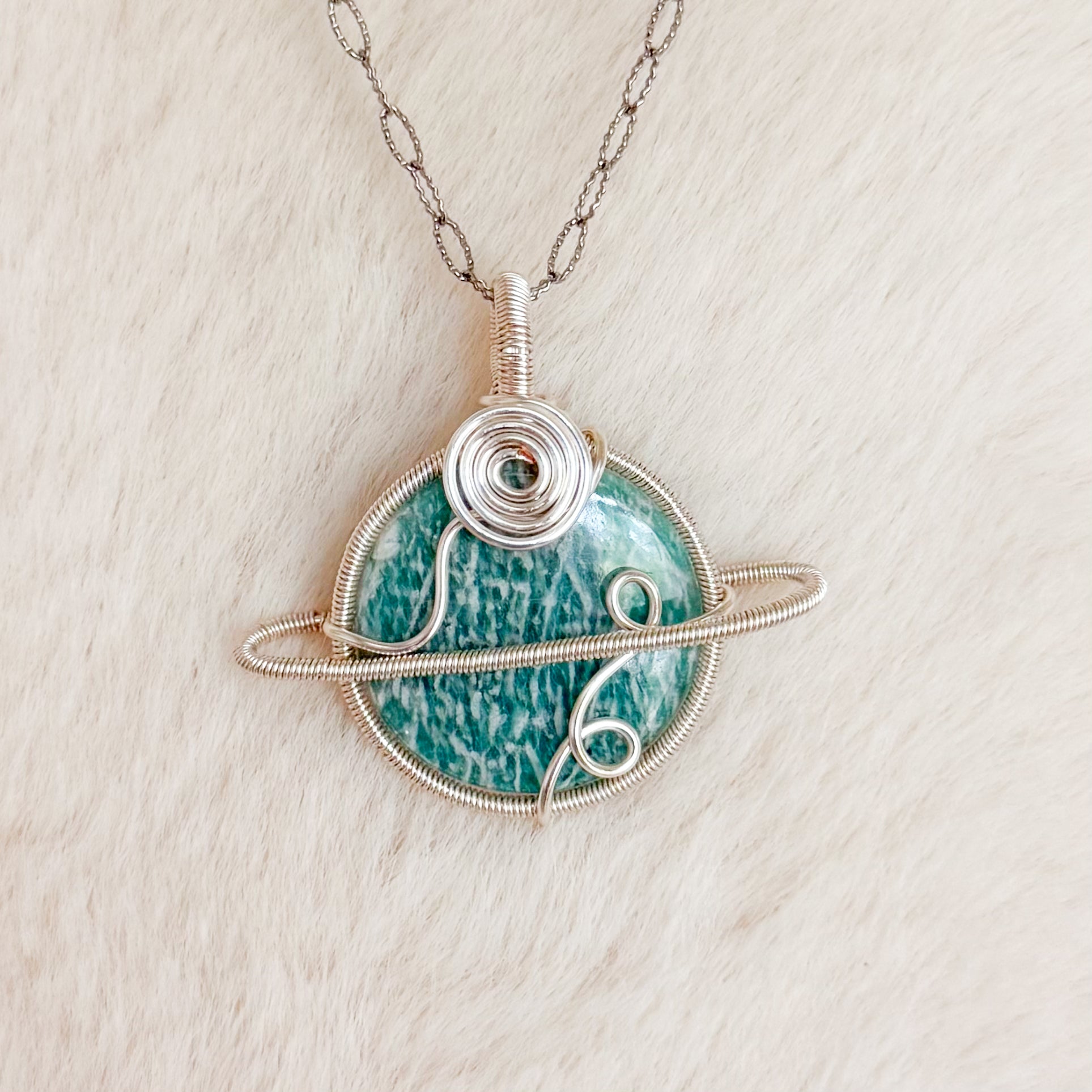 Amazonite is a stone of peace, truth, harmony, and communication. It gently soothes the nerves, and it's energies can be felt to the touch