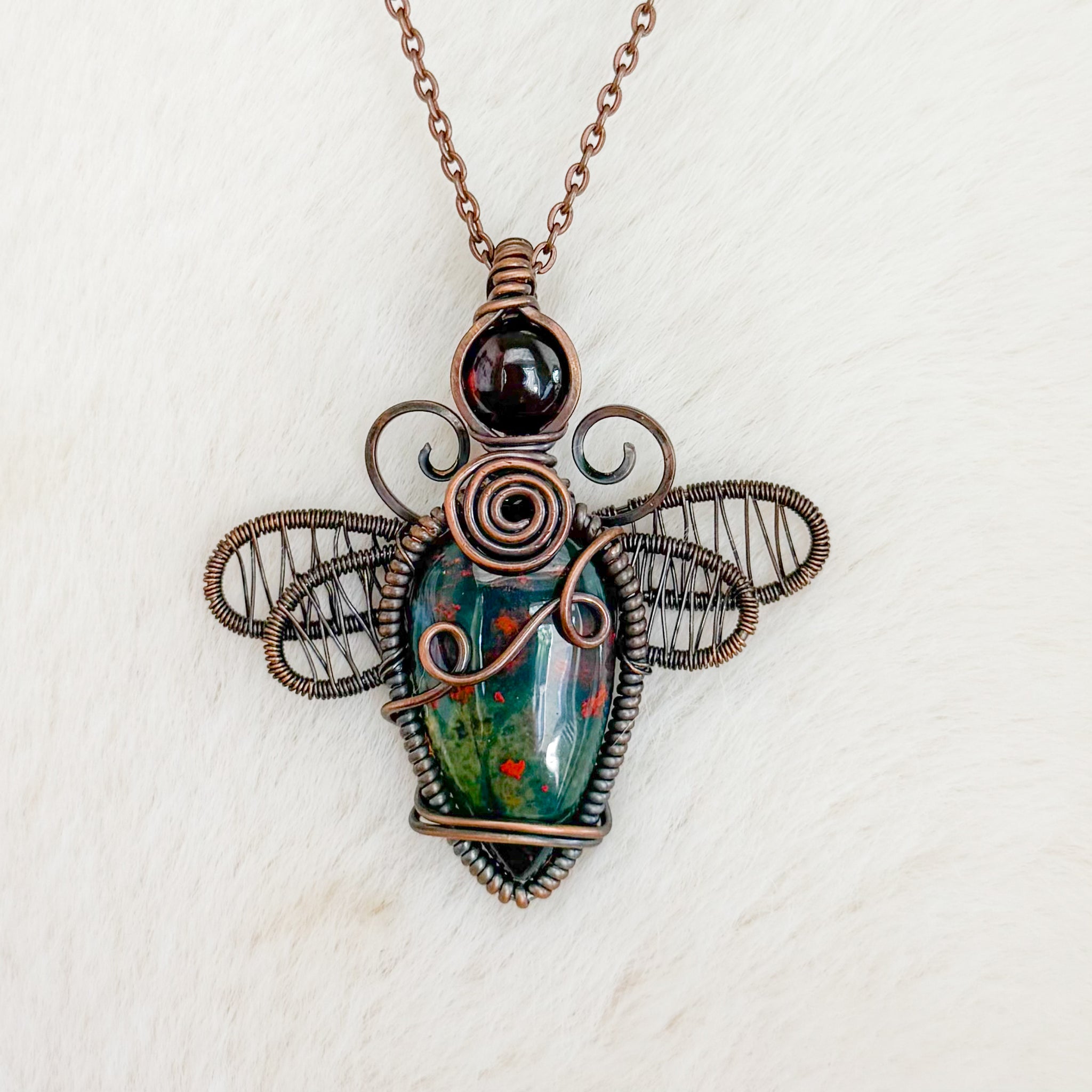 Bloodstone's metaphysical properties are associated with courage, purification, and protection, as well as promoting grounding, strength, and vitality