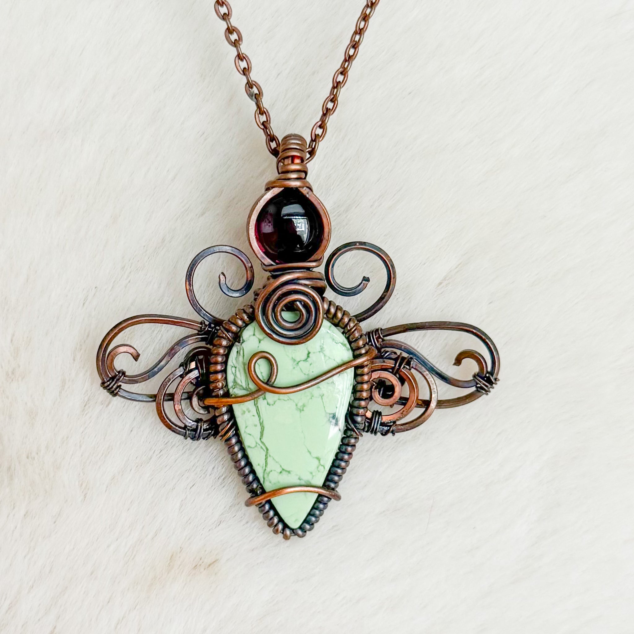 comes with black clasped cord for necklace. Silver/copper chains sold separately.