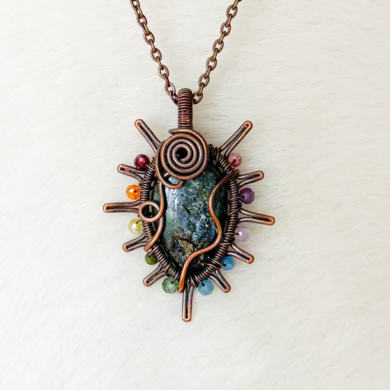 Kyanite x Rainbow Tourmaline Sun Pendant