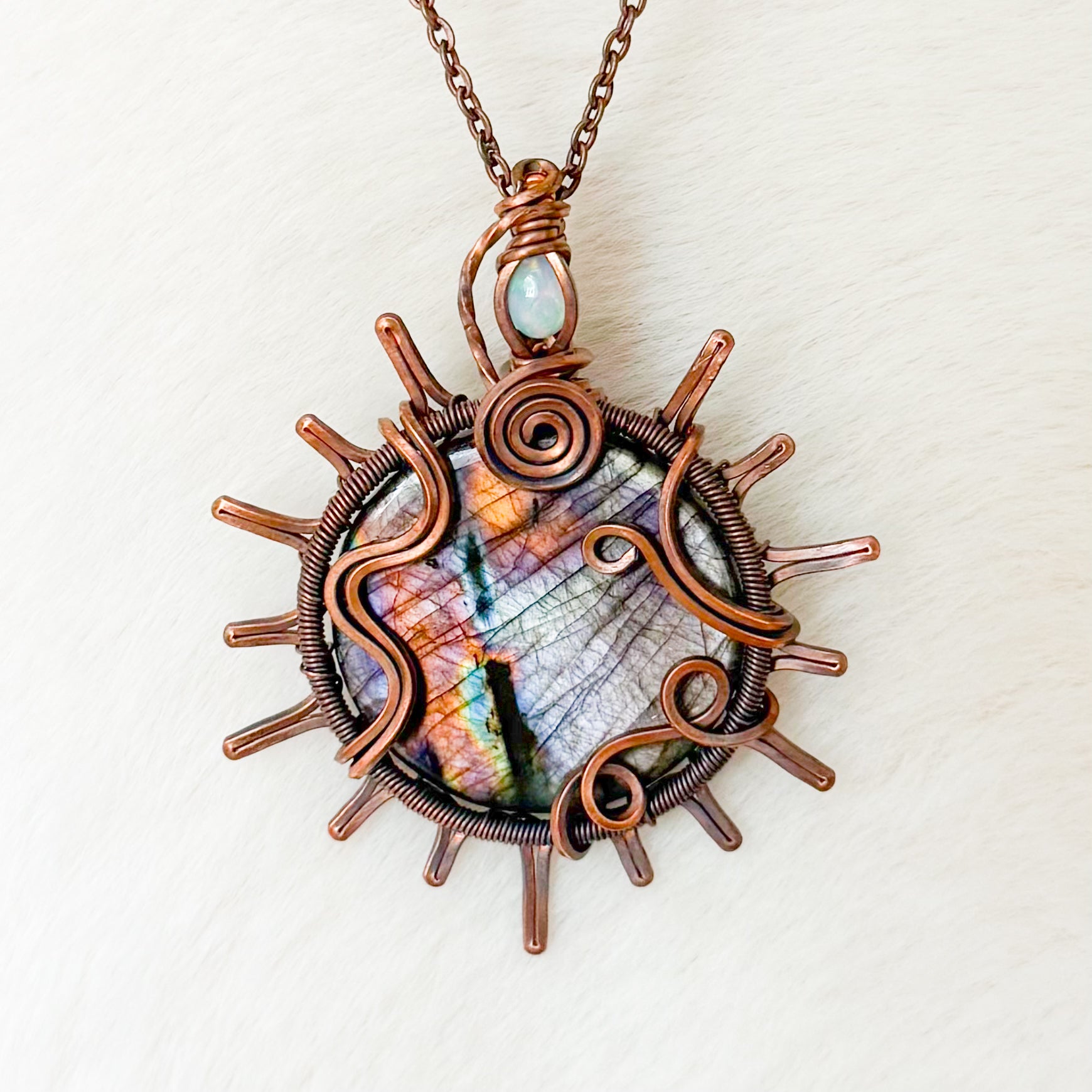 • Load image into Gallery viewer, Opal x Labradorite Sun Pendant