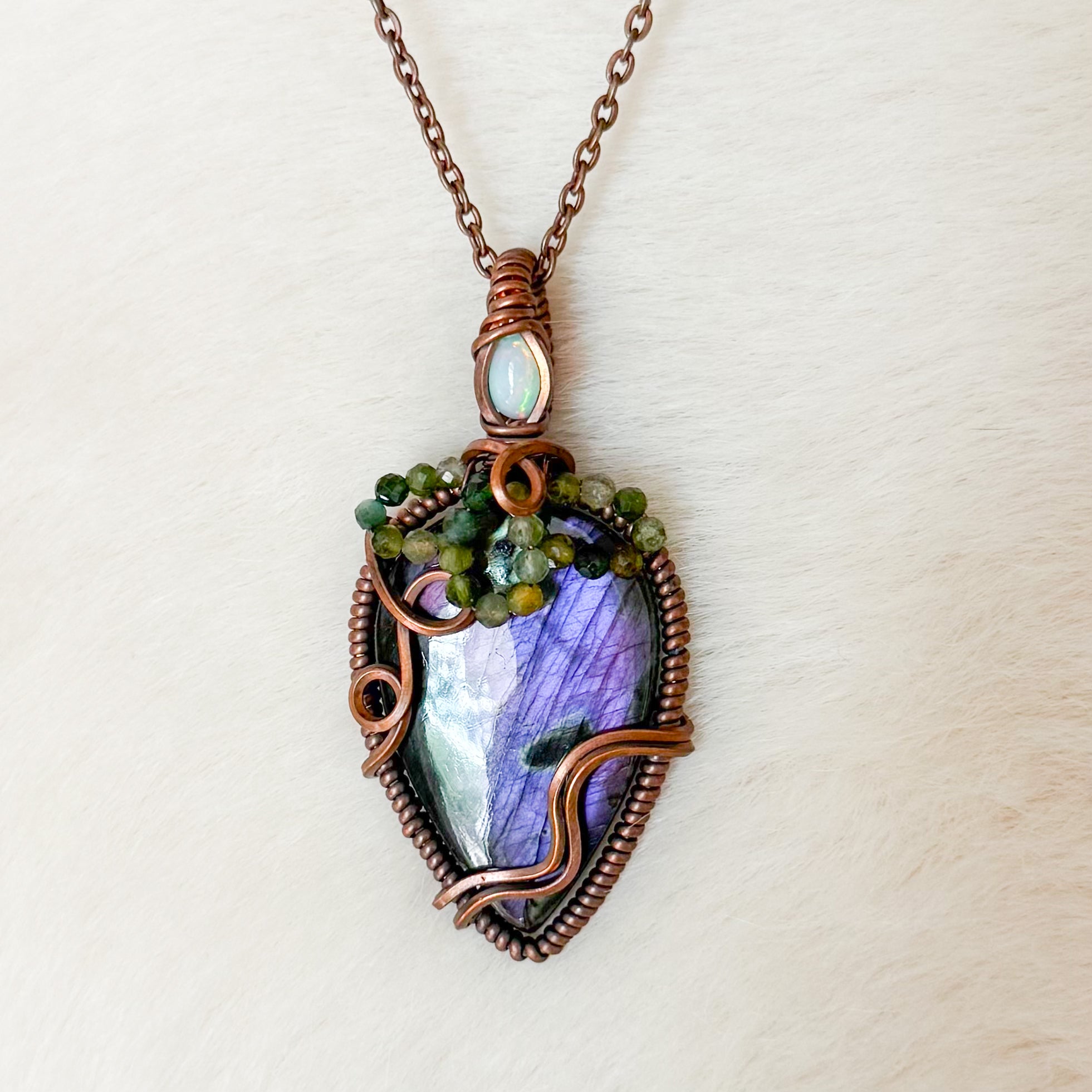 Opal x Rare Labradorite x Watermelon Tourmaline Strawberry Pendant