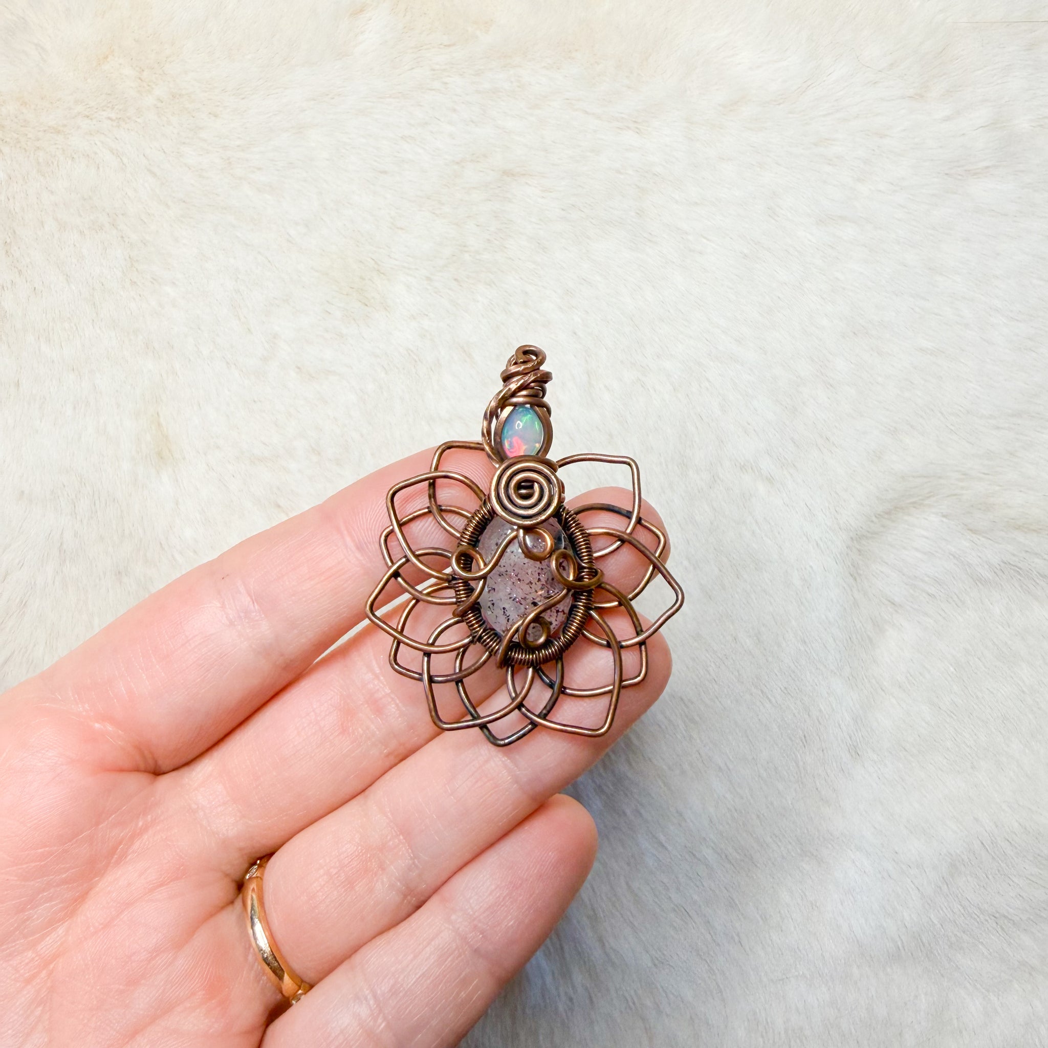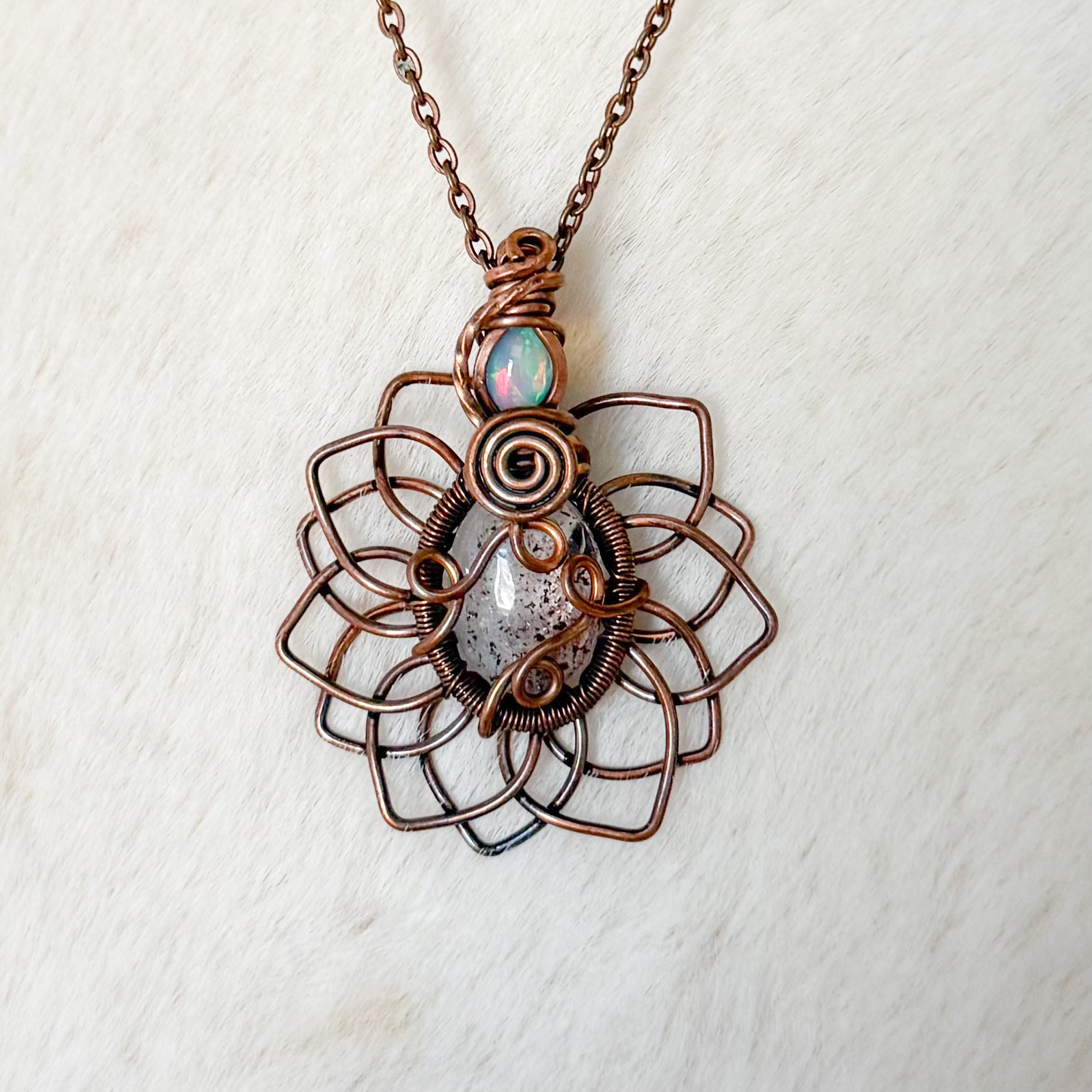 comes with black clasped cord for necklace. Silver/copper chains sold separately.