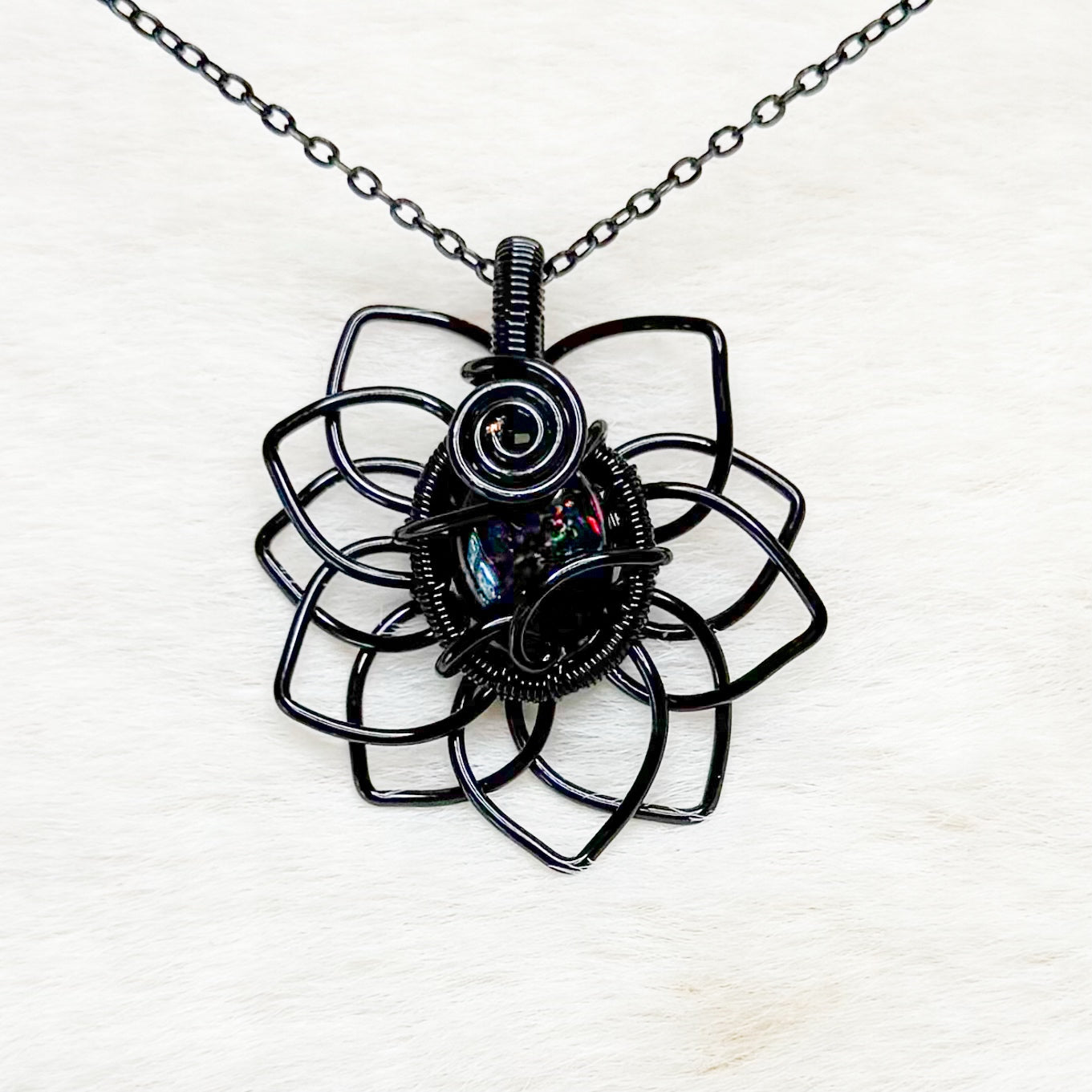 Rare Black Opal Sunflower Pendant