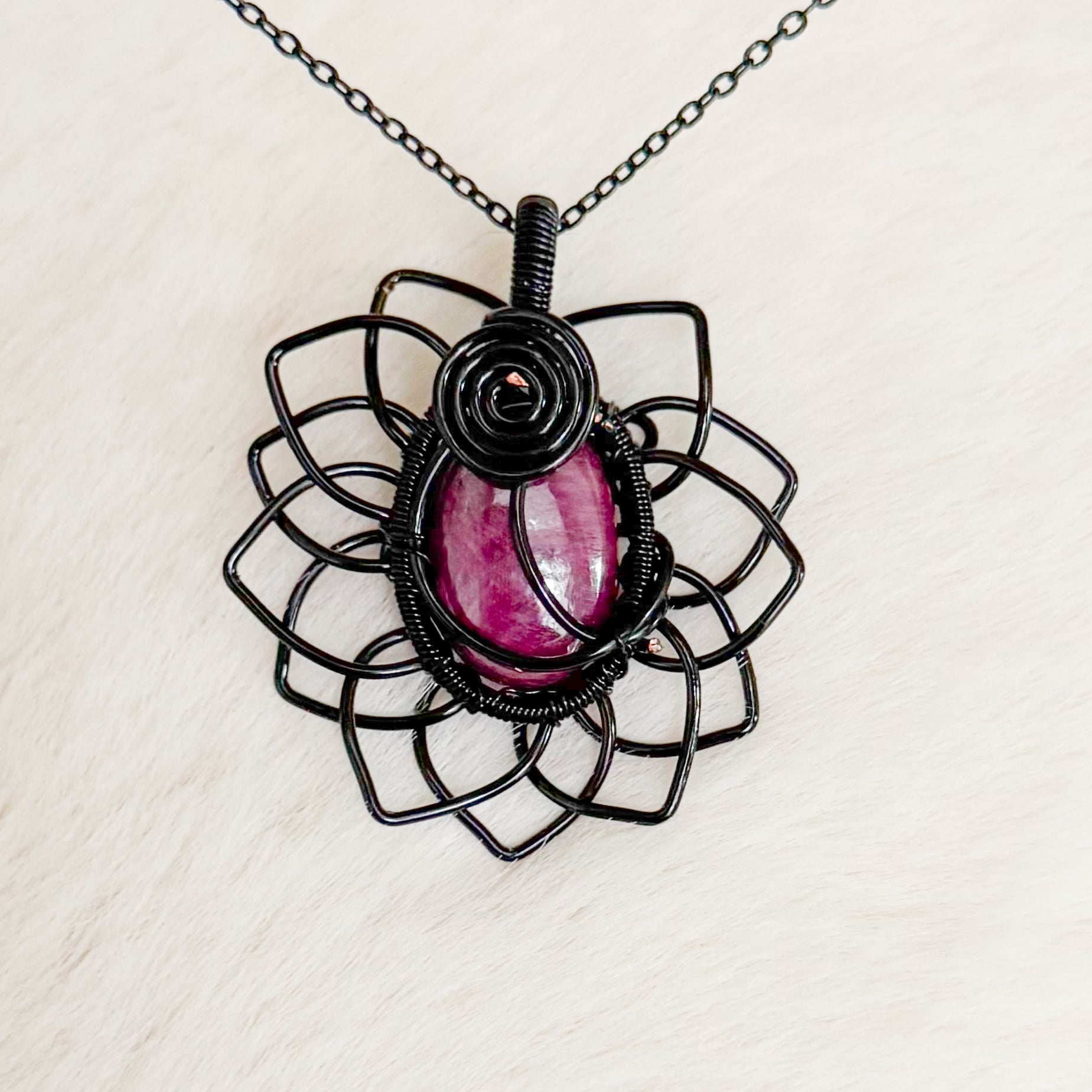 comes with black clasped cord for necklace. Silver/copper chains sold separately.