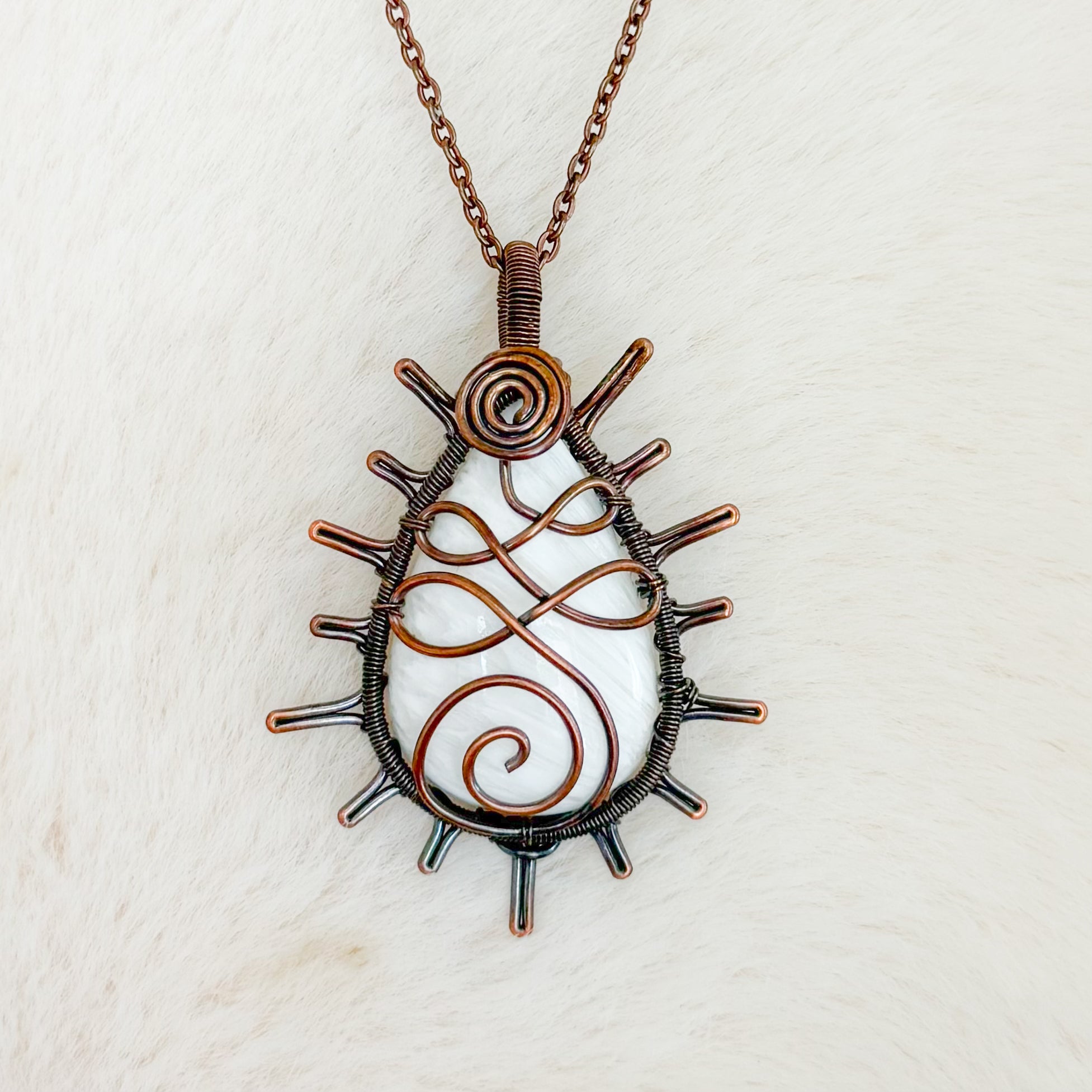 comes with black clasped cord for necklace. Silver/copper chains sold separately.